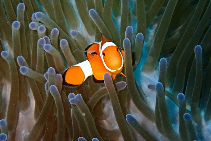 顔の模様が特徴的で、クマノミとの違いが面白いです。