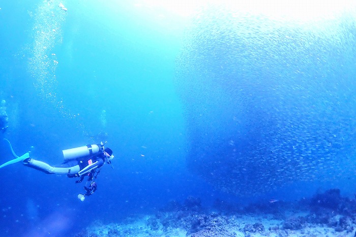 浅場は魚の群れがびっしり!