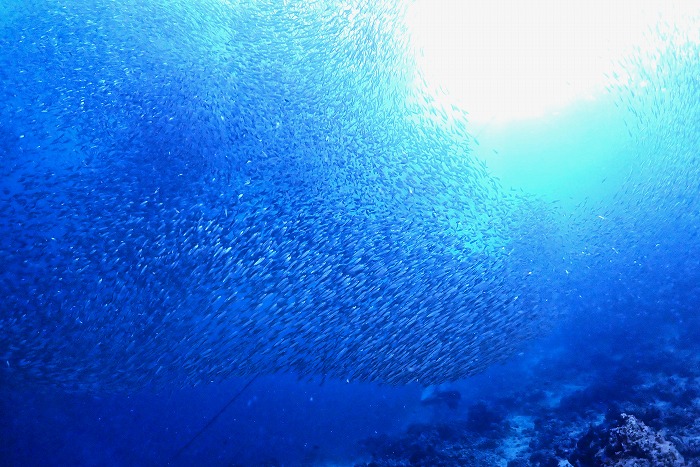 イワシの群れが壁のよう!この迫力は圧巻です。