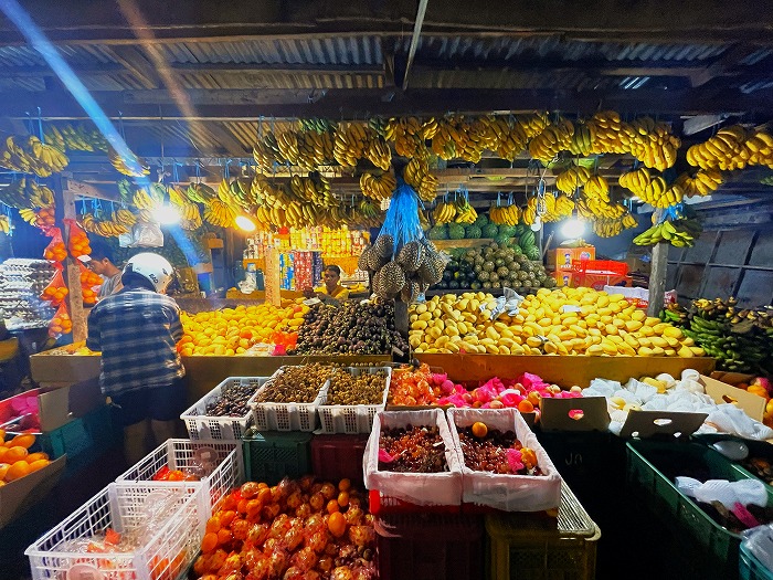市場でマンゴーやドリアンなど南国フルーツを発見!