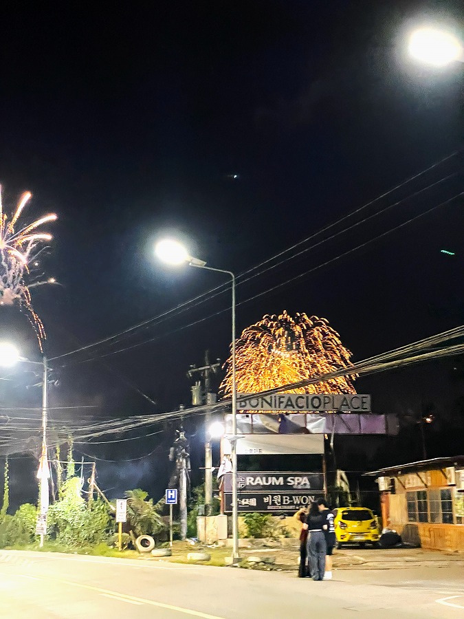 街中に花火が上がり、Happy New Year🎉