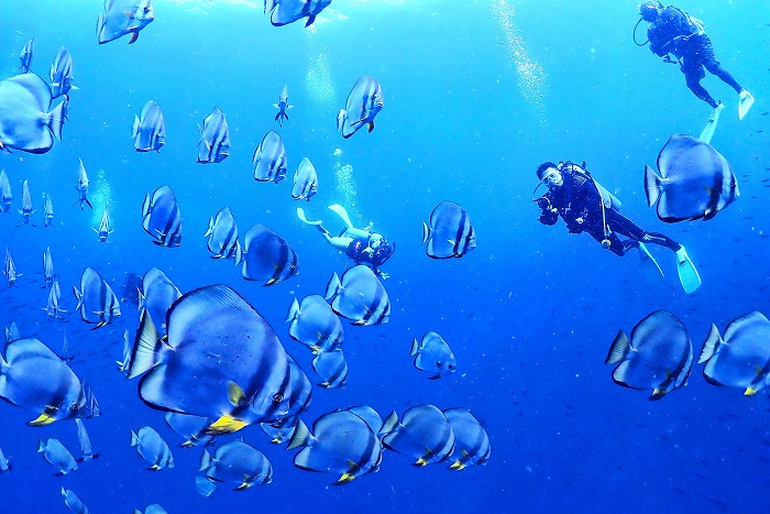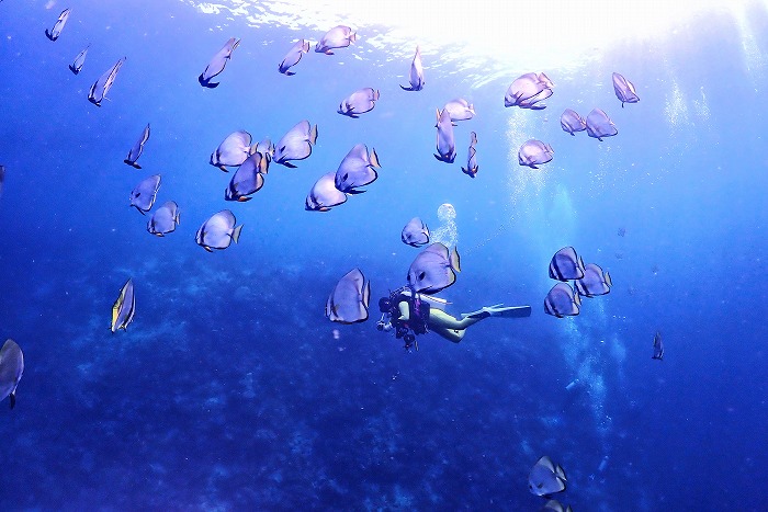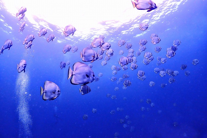 潜降してすぐにツバメウオの群れ!