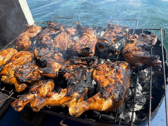 お昼は船上でBBQ!