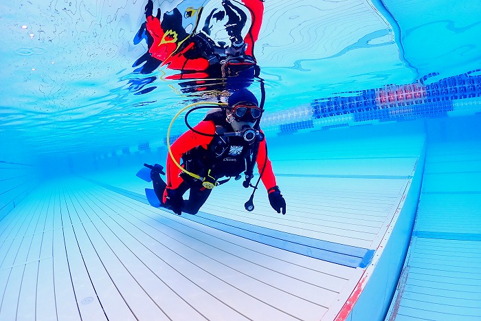 大阪の専門学校で初めて体験ダイビングをしました。